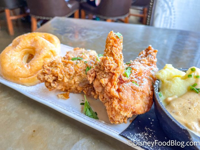You can enjoy the fantastic food off the main menu (like juicy and tender fried chicken of your dreams) AND moonshine-based cocktails in the outdoor seating area or on the go. You will also leave dreaming about their Cheddar Cheese Drop Biscuits.