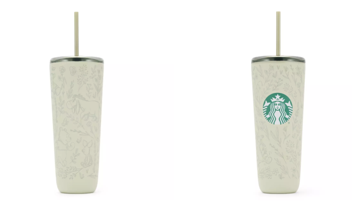 Disney’s newest Starbucks collaboration has us screaming! This neutral 24-ounce stainless steel tumbler is inspired by The Many Adventures of Winnie the Pooh from 1977. It’s classic and features characters like Pooh Bear, Eeyore, Piglet, and Tigger. They’re all surrounded by delicate floral line artwork. It has a screw top lid and comes with a straw for sweet sipping.
