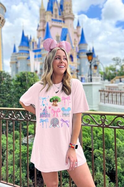 If you’re looking for a shirt that encompasses all your favorite parts of Disney World, look no further than the Magical Castle Graphic T Shirt! It comes in four different colors and features the park icons (using the water tower for Hollywood Studios!), as well as bows in different colors. Perfect for those who want to dress cute and comfortable!