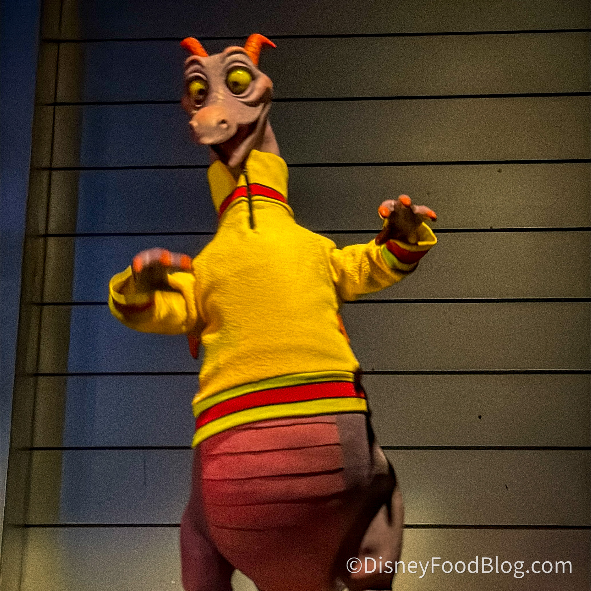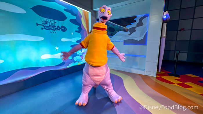 First, we had to say hi to Figment on Journey Into Imagination with Figment. You’ll find him all over the ride, but he only wears his sweater in the sound scene (don’t ask why it’s only there, I don’t know). He normally wears a yellow sweater, because I guess it’s chilly in the sound room, and that quarter zip option was back on.