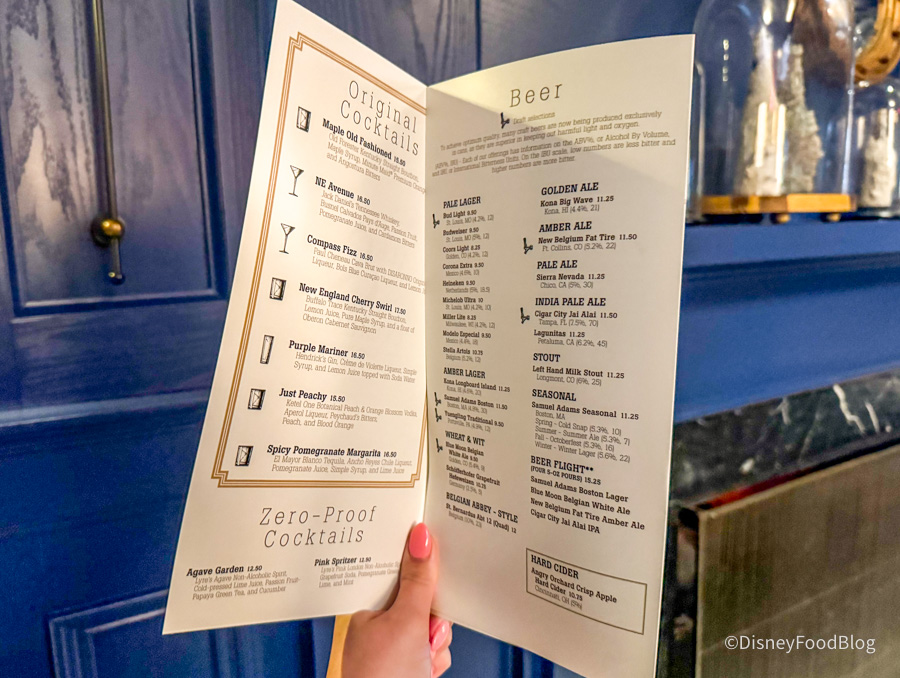 Located at Disney’s Yacht Club Resort, just a short walk from EPCOT, it’s an easy escape from the parks that somehow still feels like a hidden gem. The coastal-inspired space is calm, air-conditioned, and dimly lit in a way that makes you instantly relax after a long park day.