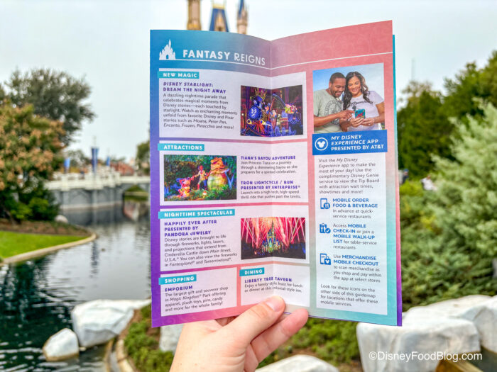 All the experiences from the parade to the fireworks to the attractions are on the first page. That first page is helpful with information on the My Disney Experience app and what it can do! We were thinking that maybe we’d see an update on Big Thunder Mountain or Buzz Lightyear since they’re opening in the Spring of 2026, but nothing yet.