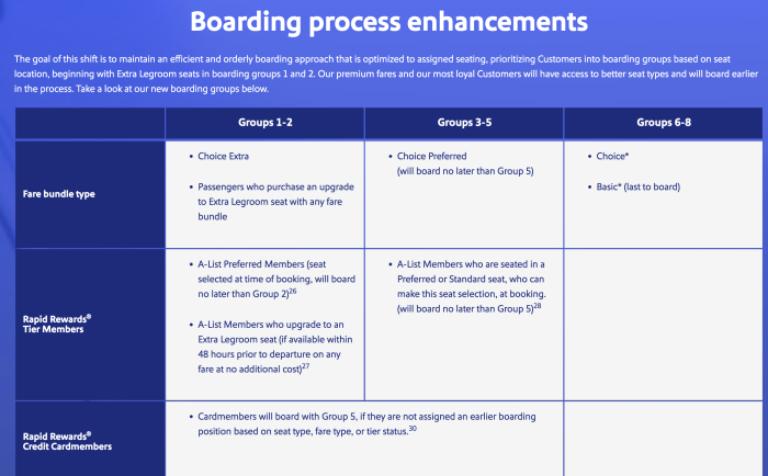 - Groups 3-5: Choice Preferred customers, A-List members in a Preferred or Standard seat, and Rapid Rewards Credit Cardmembers
