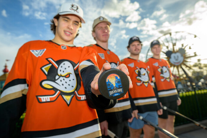 On Feb. 22, 2026, guests may partake in the Anaheim Ducks Day event at Disney California Adventure park in Anaheim, Calif. This fan and park-goer favorite returns for one day, featuring appearances by select Anaheim Ducks players and Wild Wing, hockey-themed entertainment and activities, photo opportunities and more. (Richard Harbaugh/Disneyland Resort)