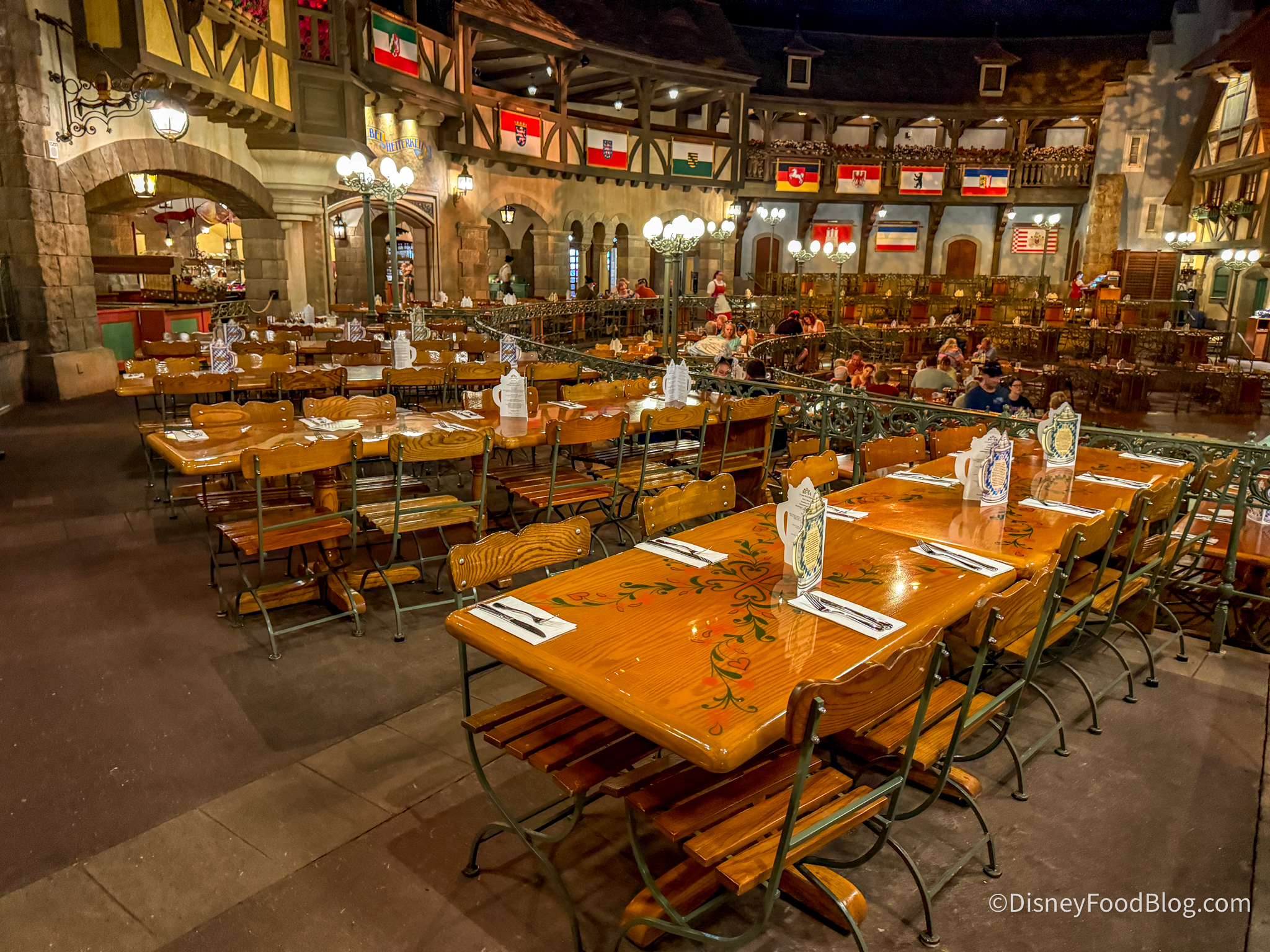 You’re basically guaranteed to sit together at one table, and the German-inspired dishes offer something different from the standard theme park fare you’ll find everywhere else.