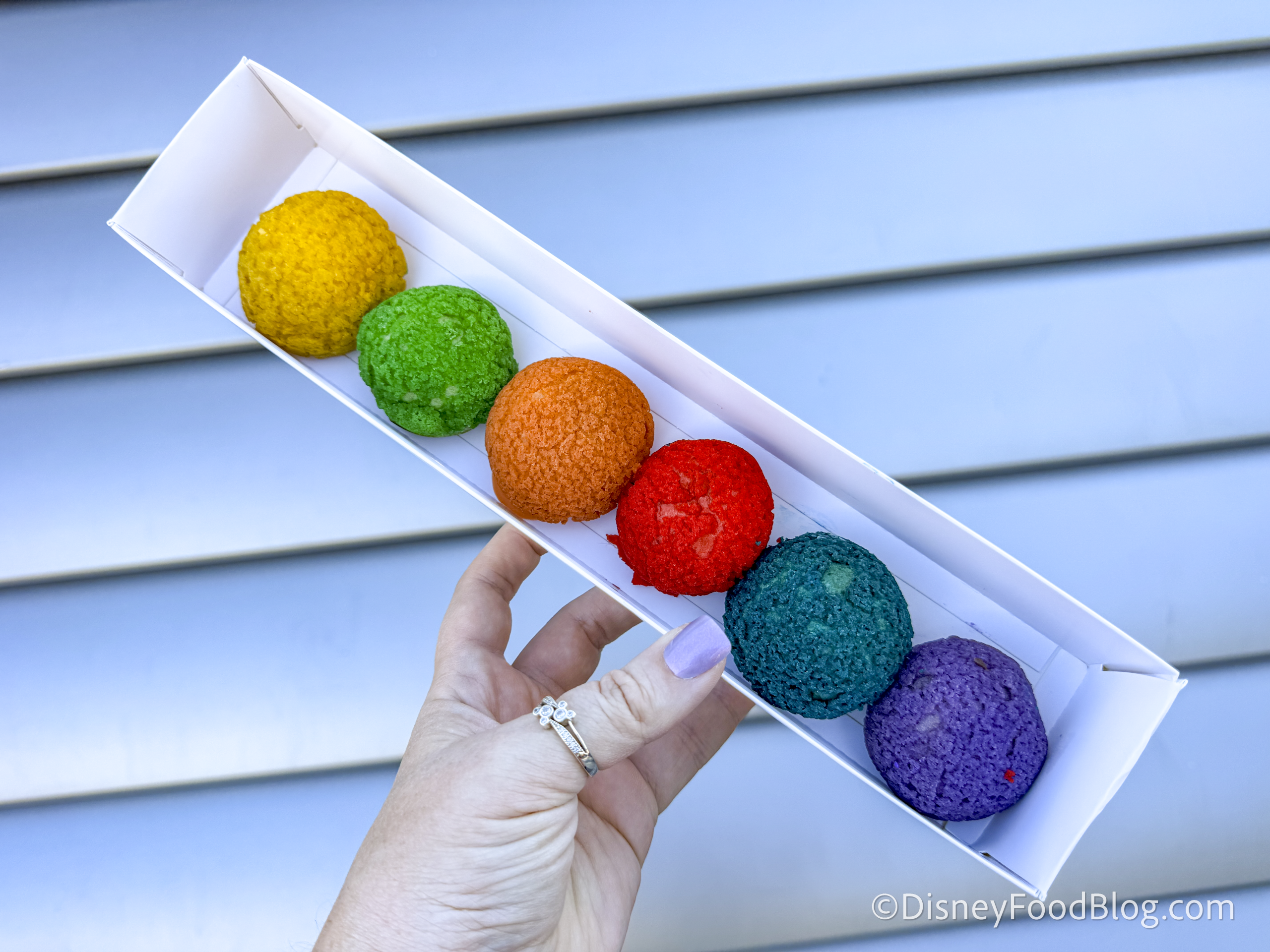 This comes with six mini cream puffs in the following flavors: raspberry, cotton candy, key lime, strawberry, pabana, and orange cream. They are super bright and fun, and also taste delicious. We loved that each cream puff had a unique flavor. Each one’s puff pastry was perfectly cooked and filled with a cold and creamy filling.