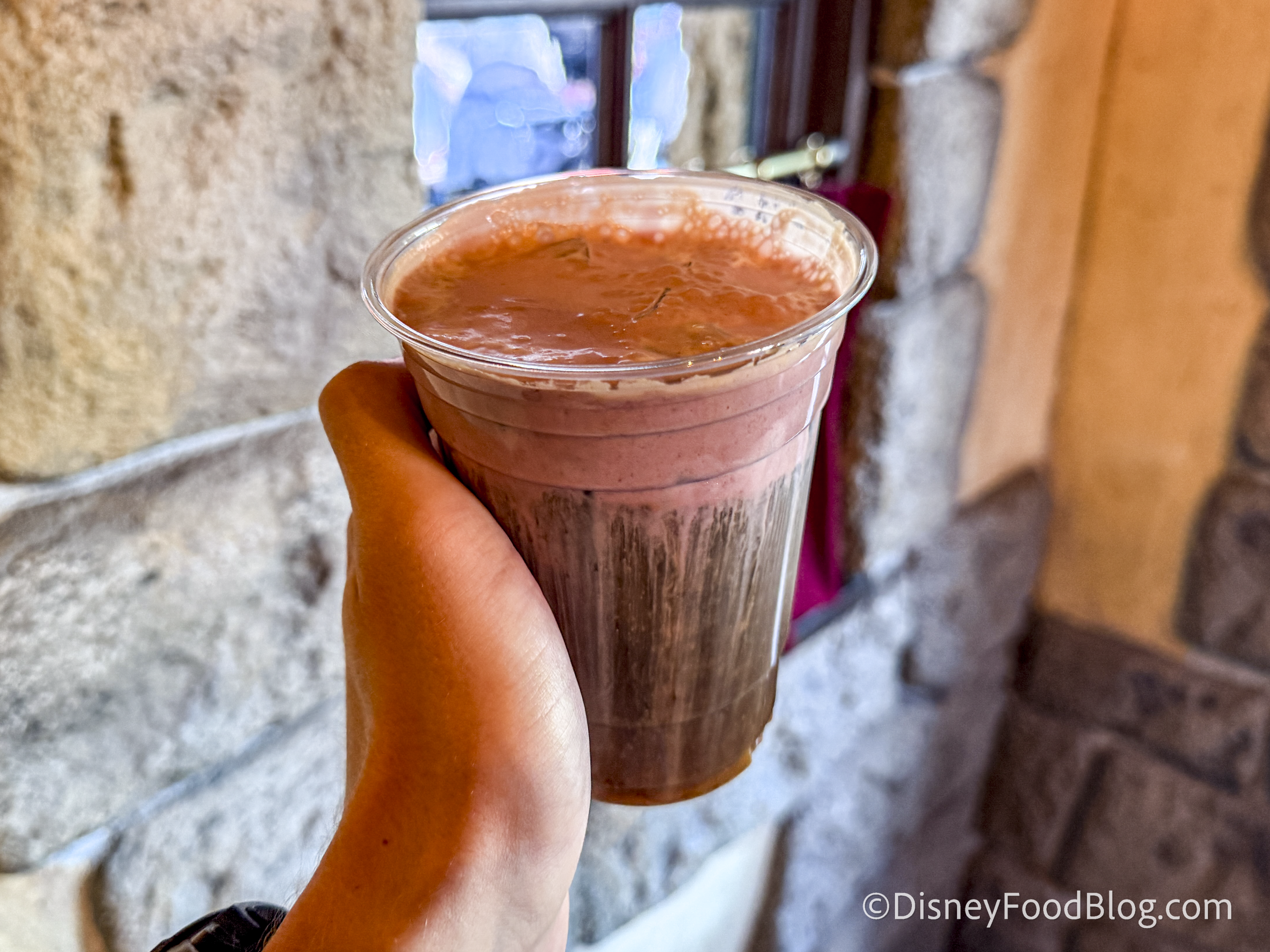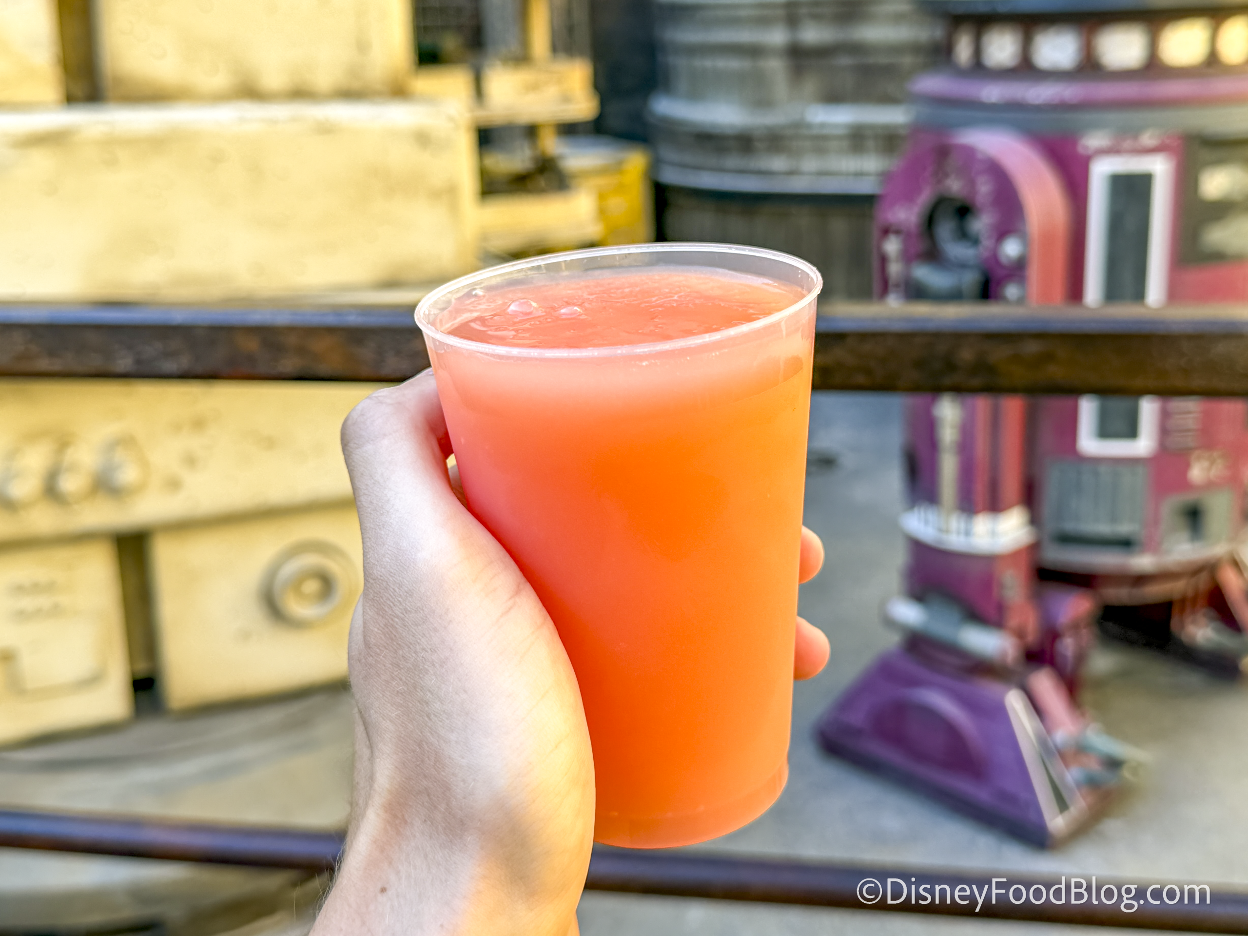 This is a plant-based rice milk blend with sweet and fruity characteristics. We had to start with this one, because we were SO excited for it! It has been a long debate whether Blue or Green Milk is better, and now there is a third contender: Pink Milk! The Cast Member told us it was a strawberry and banana flavor, but the app says sweet and fruity.