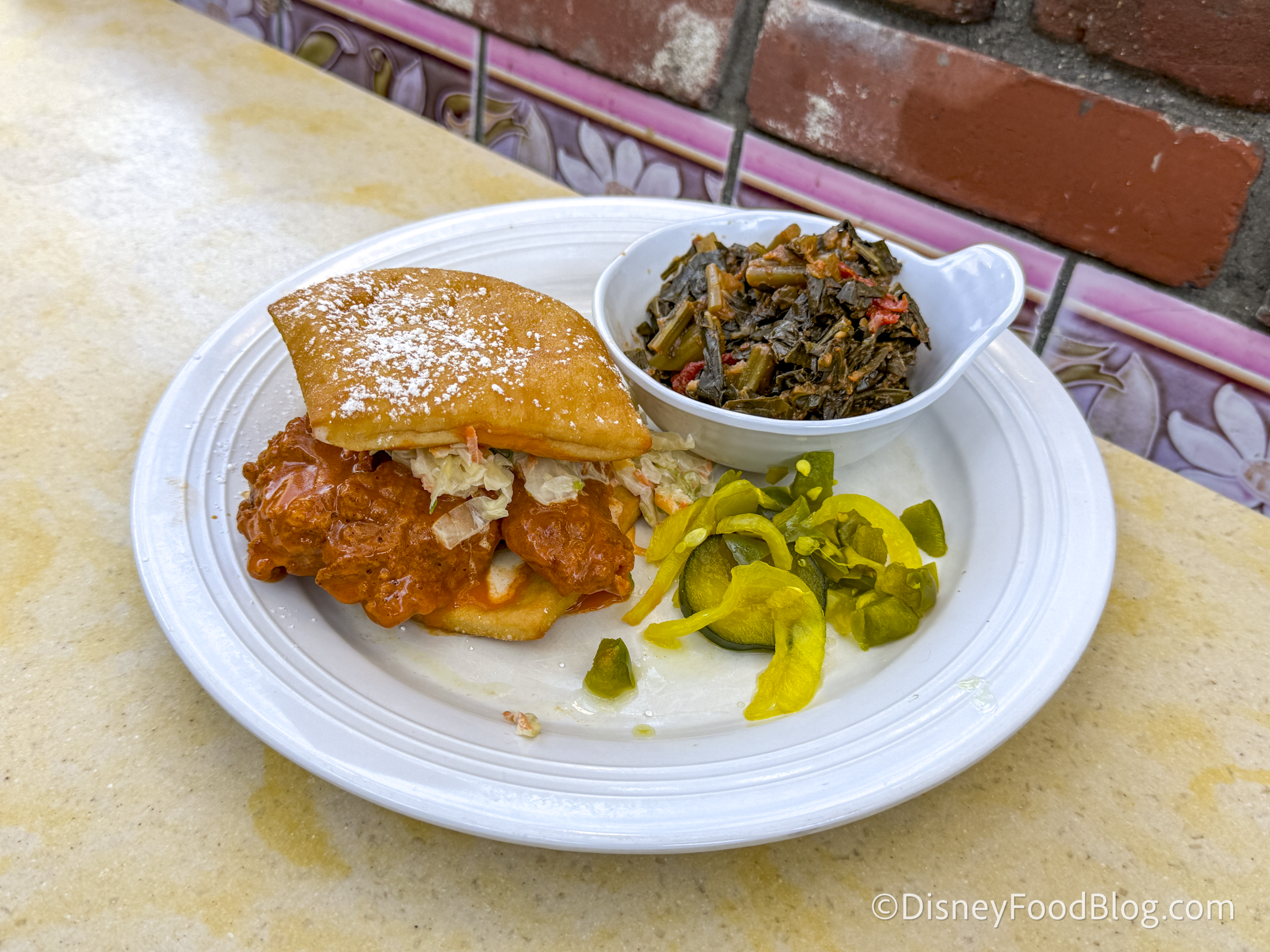 The slaw had a cool, tangy taste that helped offset some of the chicken’s heat. Then, you get a bit of sweetness and vanilla flavor from the beignets. We will definitely be back to grab this sandwich again!