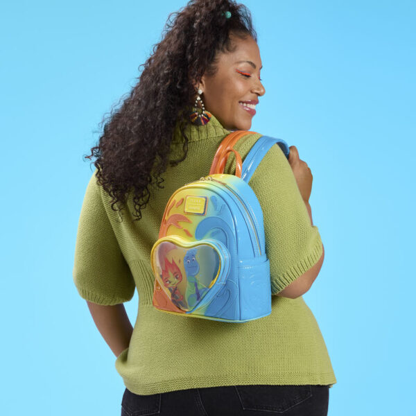 The Elemental Exclusive Wade & Ember Ombre Mini Backpack is truly adorable, and it matches the theme of the film and characters SO well! One half is blue like Wade, and the other is yellow and orange like Ember, but the clear front pocket is a heart, bringing them together, and there’s a splash of their elements above it that does the same. Talk about a cute design that’s perfect for Valentine’s Day!