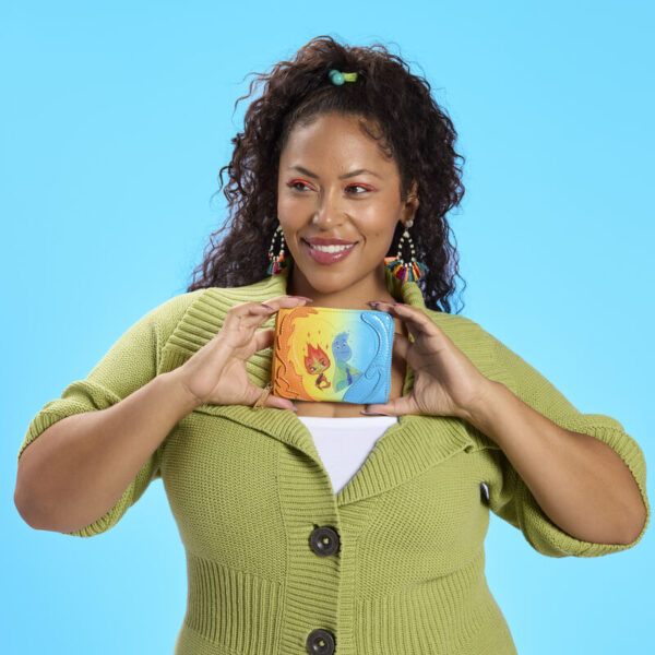 It’s not a new Loungefly collection without a matching wallet, right? Look no further than the Elemental Exclusive Wade & Ember Ombre Zip Around Wallet, which has a similar design. It’s got Wade and Ember on the front, again, with their respective colors on either side. The pattern on the inside has the two of them inside red hearts — adorable!