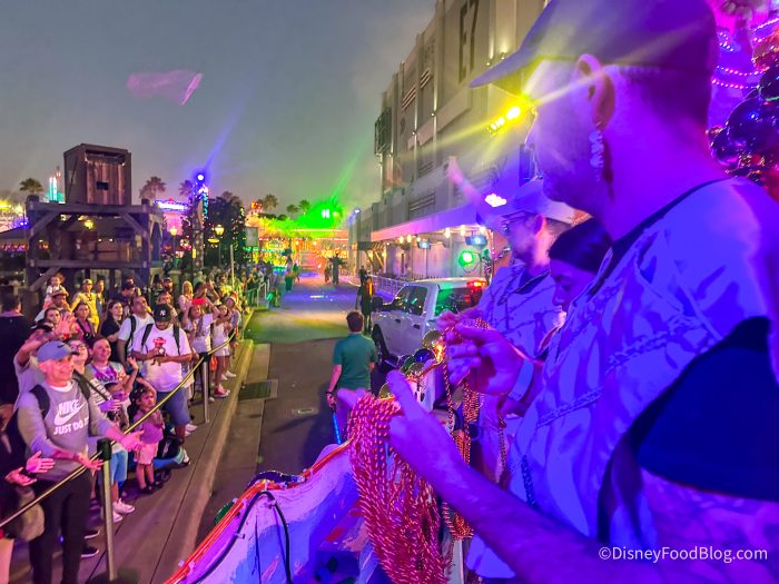 There are two options for snagging a spot to throw beads: purchase a Mardi Gras Float Ride and Dine Experience, OR, if you are an Annual Passholder, you can try to grab a free reservation. Reservations are already open for the Mardi Gras Float Ride and Dine Experience, but if you are an Annual Passholder hoping to snag a free spot, you need to mark your calendars.