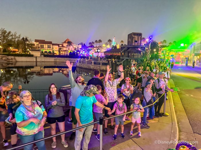 Reservations for Annual Passholders open on January 15th after 12 PM. (In the past, we have seen reservations open up right around 12 PM, but currently Universal is just saying it will be sometime after 12 PM, not that reservations will actually open at 12 PM.) You can sign up for yourself and up to 8 other Passholder friends — just make sure you have the names and pass numbers for everyone else you are trying to sign up. You can register to be in the parade and throw beads on select nights from February 7th through April 4th. Spots fill FAST, though, so get some finger exercises in and be ready to go.