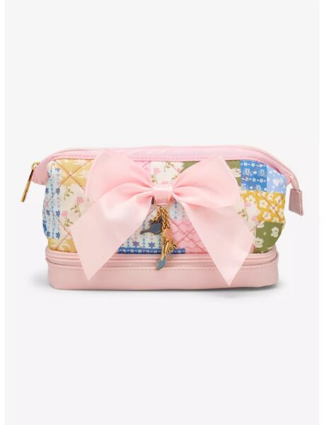 Travel like royalty with this Disney Princess Icons Patchwork Quilted Cosmetic Bag! This BoxLunch exclusive cosmetic bag is a quilted bag that includes two zipper compartments, a bow, and metal charms. You’ll see the metal charms resemble iconic princess symbols, like Cinderella’s glass slipper.