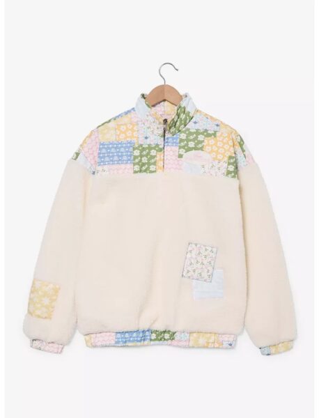 We love this Disney Princess Patchwork Sherpa Quarter Zip Crewneck! This crewneck is made with a sherpa material and decorated with quilted Disney Princess-inspired patches and embroidered lettering. From the colors to the cozy material, there’s nothing not to love about this.