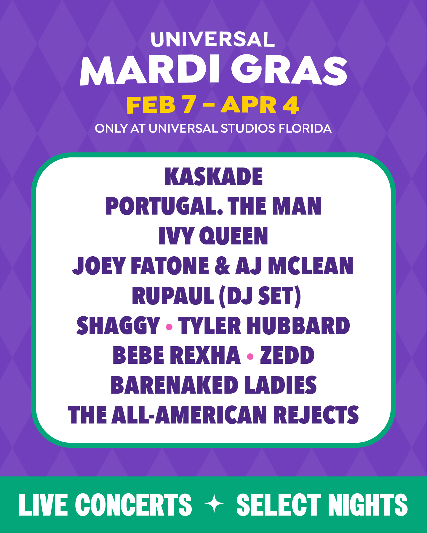 Check out Universal Orlando’s Mardi Gras 2026 Concert Lineup: