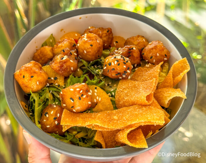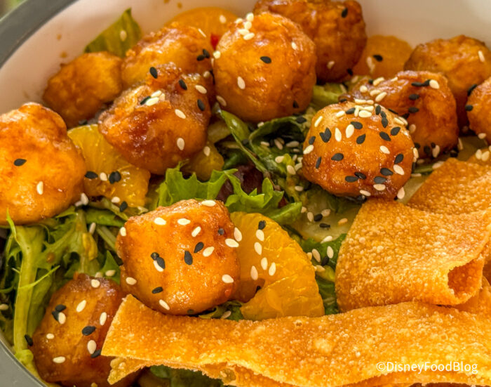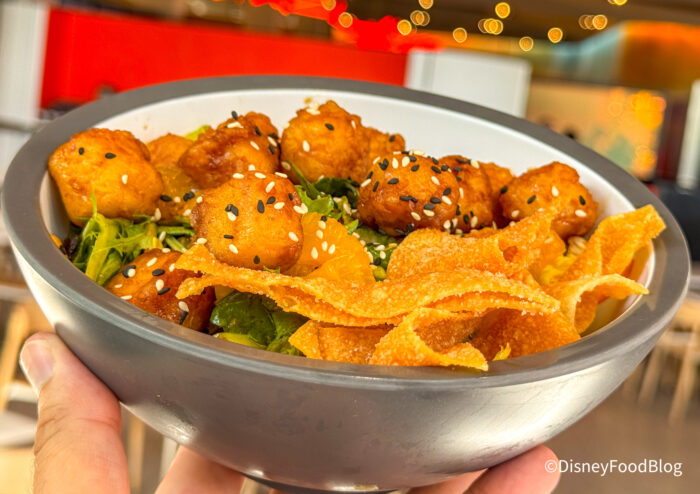 The salad comes already dressed, and the dressing is evenly distributed throughout. The tofu cubes are crispy on the outside but bouncy on the inside, almost like paneer. They’re somehow perfectly soaked in the General Tso’s dressing while still staying crisp, which honestly feels a little magical.