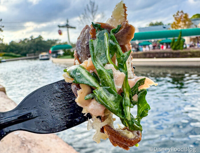 And can we talk about the size? This thing is huge!! Like, genuinely big enough to share (though we wouldn’t judge you at all if you didn’t want to.) It’s filling, comforting, and feels more like a meal than a snack, which is honestly a win when you’re spending a full day walking around World Showcase.