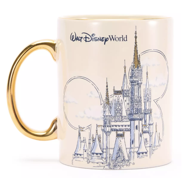 If Cinderella Castle is one of your favorite parts of Disney World, or maybe it’s what reminds you most of the magic, the Cinderella Castle Mug is a great choice. The handle is gold, while the actual mug is a slight off-white, making the blue and gold outline of the castle really pop. It’s complete with a Mickey silhouette behind it, which really brings it all together!