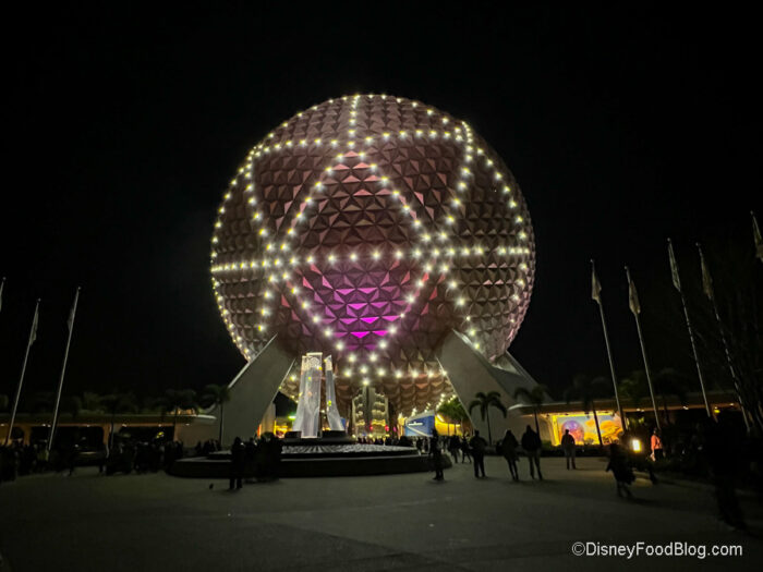 The night ends with a special show on Spaceship Earth exclusive to the festival! You’ll hear “You’re Welcome” from Moana and see a special lighting show. It’s a fun way to cap off a day at the festival and see Spaceship dance with lights.
