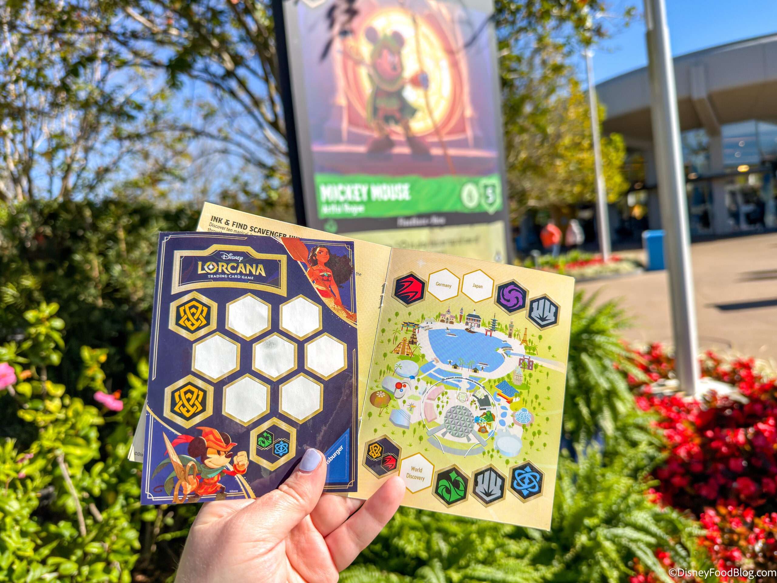 There are also NEW Disney Lorcana experiences at the Festival of the Arts this year. Of course, we had to check those out too! You can pick up a Festival Questbook and go on an “Ink and Find” adventure around EPCOT, looking for larger-than-life trading cards. When you’ve found all the giant cards, head back to Illumineer’s Lounge in Morocco to get a limited-edition Magical Places promo card.