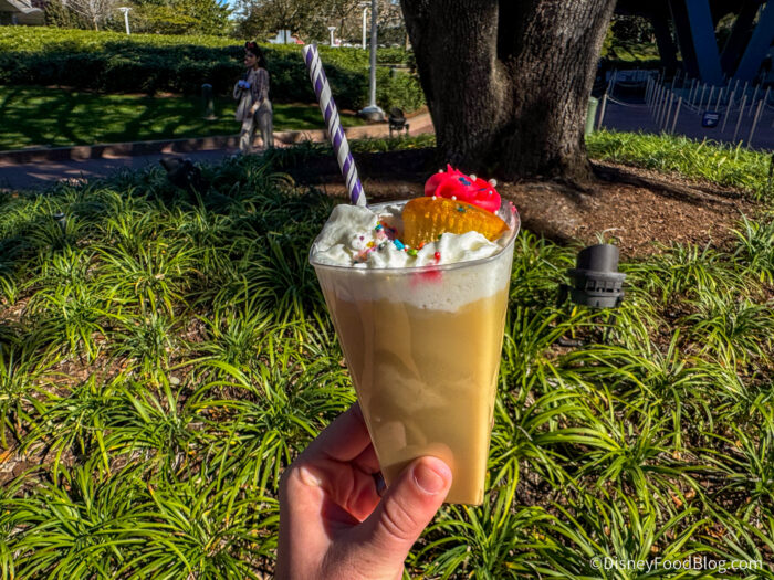 It’s made with a unique yellow cake soft-serve and also features Twinings English Breakfast Tea. Of-age guests can try it with whipped cream vodka for $12.50. We tried the alcoholic option, which immediately brought to mind classic birthday cake ice cream. The shake is topped with an adorable cupcake that adds to its visual appeal. When the cupcake is left in the shake long enough, the cupcake absorbs the surrounding flavors, enhancing the overall experience. Sweet, nostalgic, and well-executed, this was an enjoyable and whimsical treat.