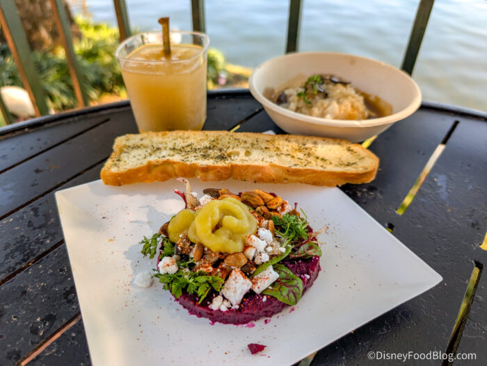 Didn’t have roasted bone marrow on your EPCOT Bingo card, did ya?! We’ve seen various versions of this dish here since 2022. In 2022, there was mache lettuce and bone marrow snow listed on the menu. But this is the same dish we experienced in 2023, so if you had it last year, you can expect a similar experience.