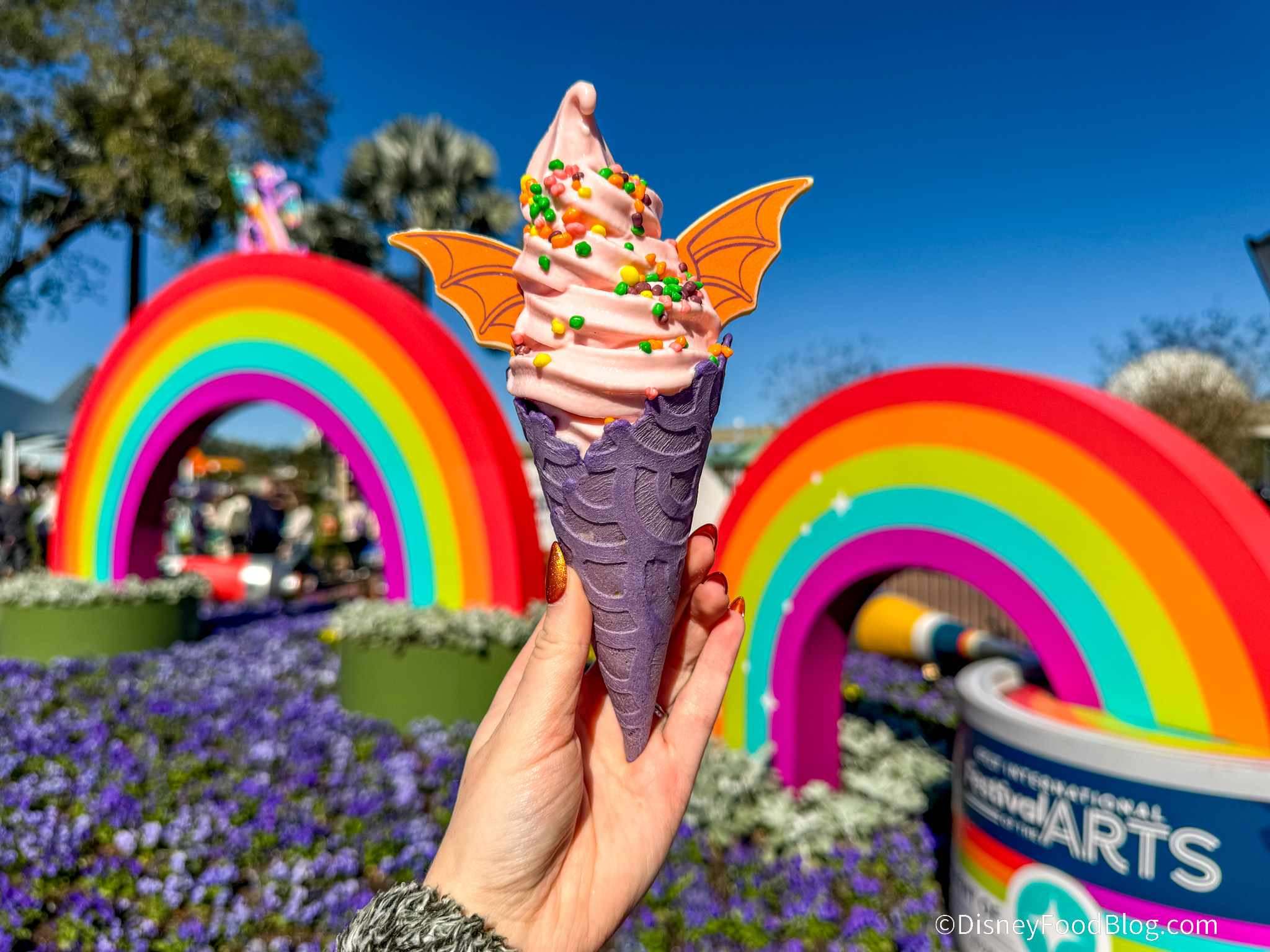 DOLE Whip in a cone is also on the menu in several unique flavors. You can also order the Pink Vanilla soft serve in a cone, minus the Figment wings. There are no drinks on the menu this year.