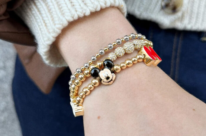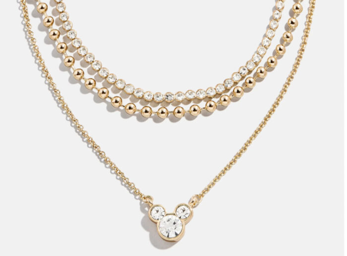 These layered necklaces feature three cohesive chains – a chain lined with brilliant glass stones, a sleek ball chain to add texture to your stack, and a dainty gold chain with a bezel-set crystal in the shape of Mickey’s signature silhouette – connected by a single clasp, giving wearers “just the right hint of Disney for every day.”