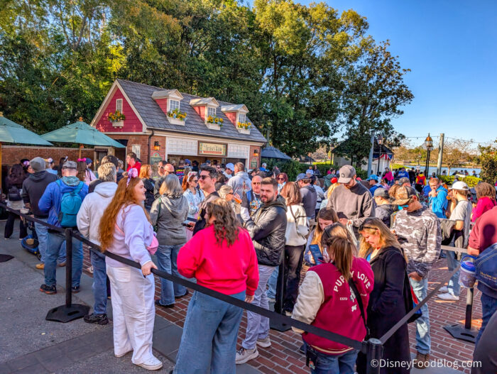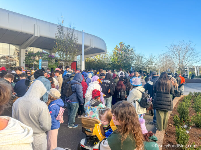 However, yesterday was opening day for one of EPCOT’s most POPULAR festivals, Festival of the Arts, and while we were expecting things to be crowded, we didn’t think they’d be THIS intense. If you’re heading to the festival opening weekend (especially since Monday is a holiday), you’ve gotta pack your patience when it comes to waiting in line for your food.
