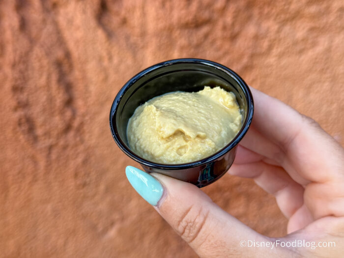 For years, the menu didn’t change at Tangierine Cafe when it came to Festival eats, but this year we have a new savory dish for the Festival of the Arts — a Moroccan Wrap with tomato-cucumber relish and garlic sauce served on warm Moroccan flatbread that you can get filled with your choice of Chermoula Chicken, plant-based Falafel, or Moroccan-spiced lamb. This dish is $6.29 or a snack credit on the Dining Plan.