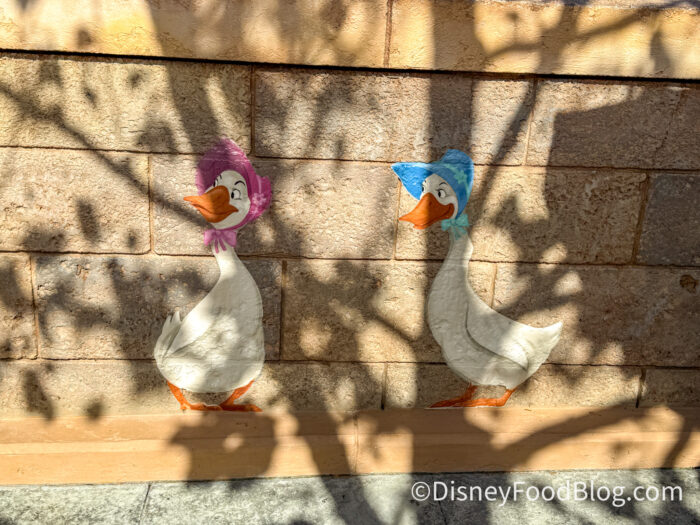 There are a few characters you’ll spot in France! Abigail and Amelia Gabble, along with Uncle Waldo from The Aristocats, are waddling through the pavilion!