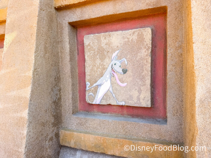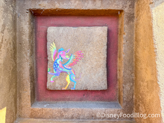 As we made our way around EPCOT, we found SO much artwork! In the Mexico pavilion, near the entrance to the pyramid structure, we found a very special friend from Coco, Dante!
