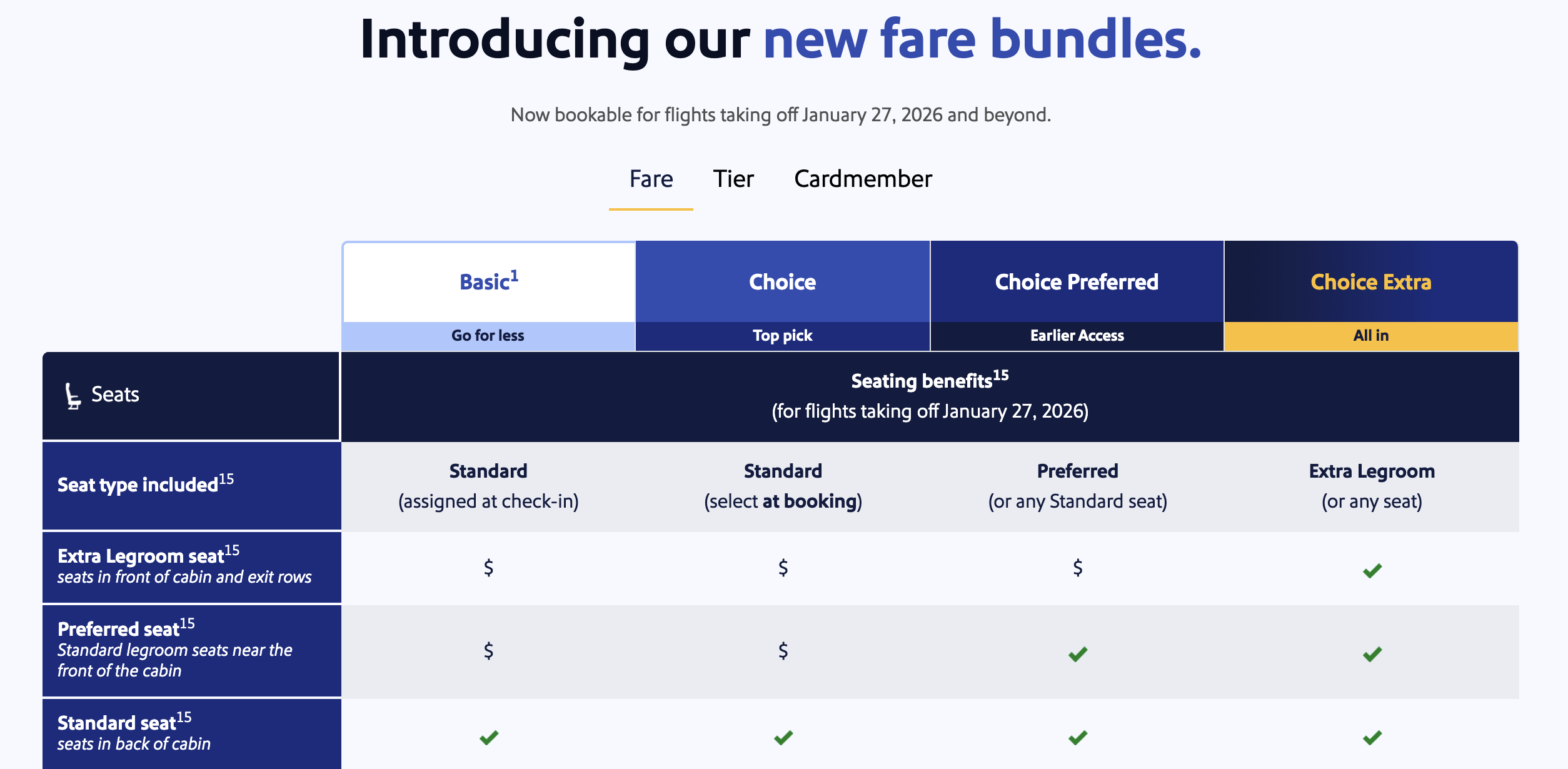 - Preferred Seats are your middle-tier option. You’ll get standard legroom in the forward and middle sections of the cabin. This group boards in Groups 3 through 5, so you’re not first, but you’re not last either. These seats cost less than Extra Legroom but more than Standard.
