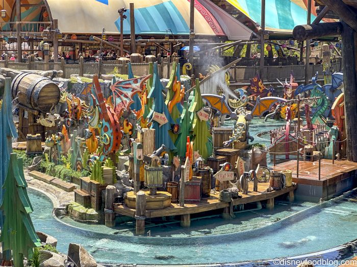 Fyre Drill is a water boat attraction located in Isle of Berk. The story is that Ruffnut and Tuffnut have transformed Berk’s Fyre Skööl into an interactive boat battle. You’ll board your boat and blast your water cannons at flame-like targets, as well as the other boats around you! If you hit special targets, the other boat will get soaked with additional water!