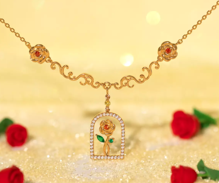 Maybe Belle is your princess of choice? If that’s true, there’s also an Enchanted Rose Necklace by Girls Crew. The design is finished in goldtone and accented with various-colored cubic zirconia stones. That rose is so dainty and beautiful!