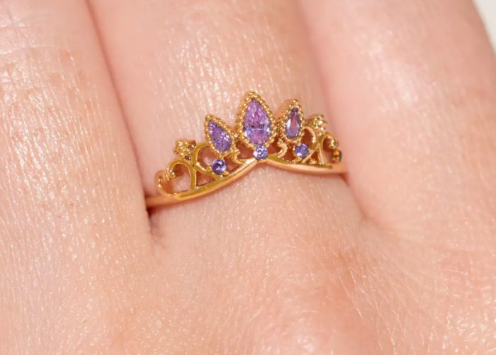 To add to that Rapunzel-inspired look, grab the Rapunzel Ring by Girls Crew – Tangled. This one is made in complementary colors, but the design is inspired by her tiara. A bit more of an obvious Disney design, but still so cute.