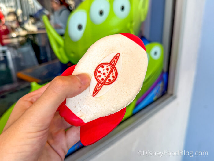 Alien Pizza Planet at Disneyland is known for its pizza, pasta, and salads, but its new star menu item is neither of those. It’s a macaron cookie!