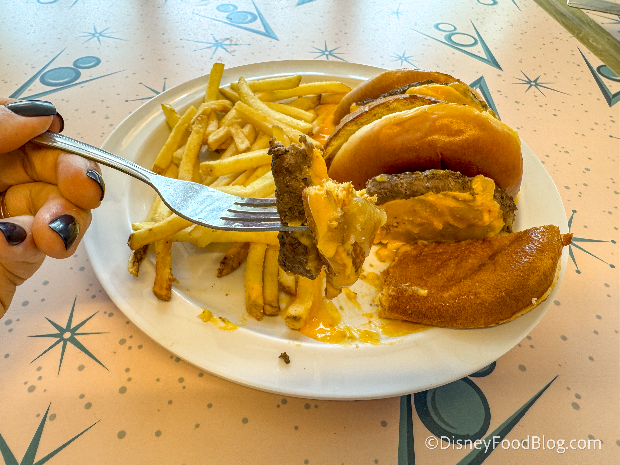 The cheese sauce has a kick and some tang that pair well with the burger. The burger was well-cooked, and we loved the crunch from the B&B pickles. The caramelized onions added a much-needed bit of earthiness to the dish. We definitely think the cheese sauce was the star! It does have a bit of spice, though. We want all our burgers served with gooey cheese sauce from now on!