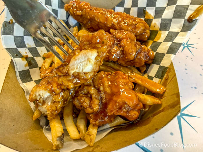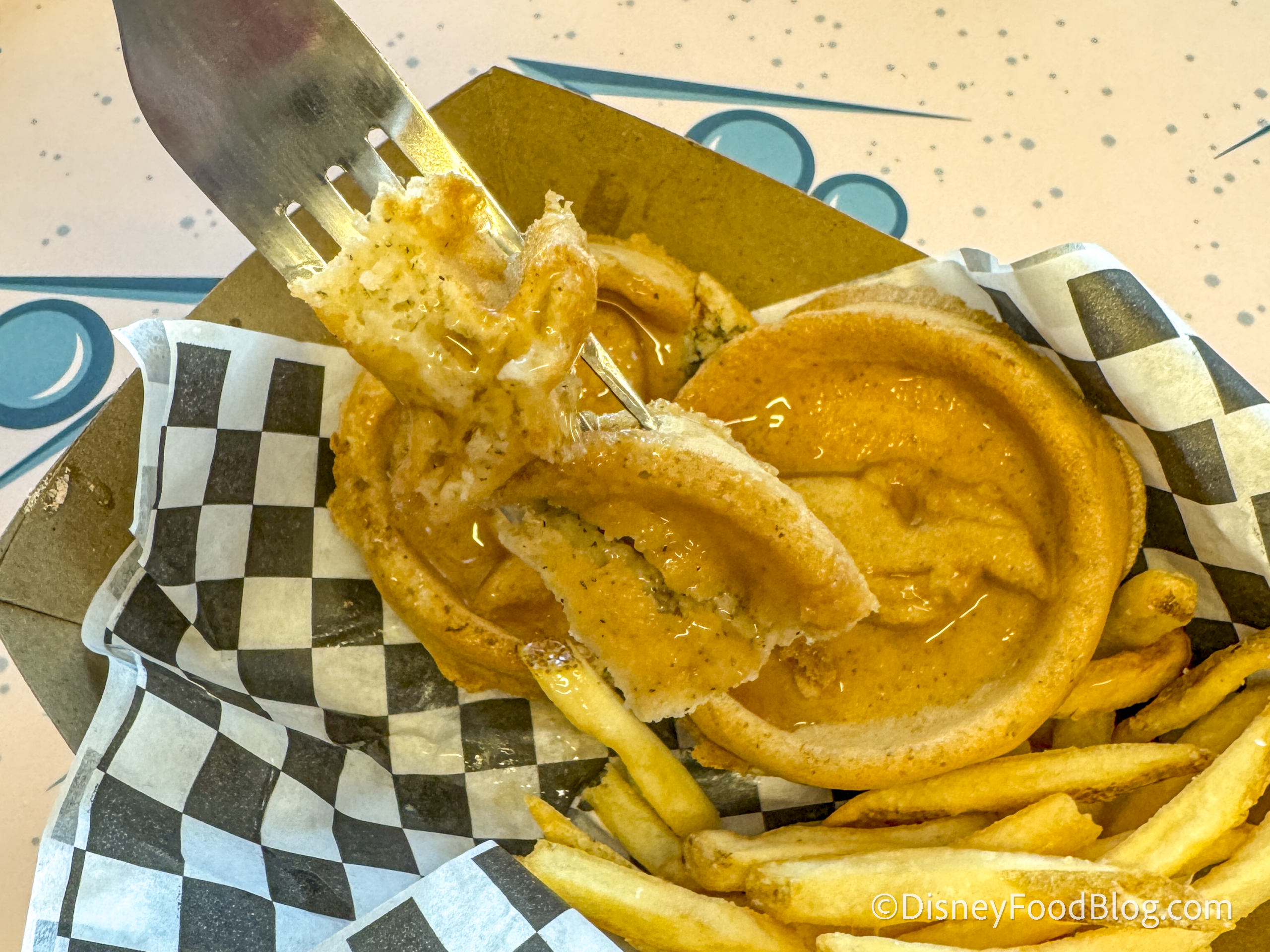The waffle is good, but it is standard for what you will find at most Disneyland quick service spots. The chicken was crispy, and the breading was tasty. However, there just isn’t enough flavor in the dish. We got a subtle kick, but we wish there was a bit more to this dish. It didn’t wow us as much as the other dishes, but it is still tasty and a solid option!
