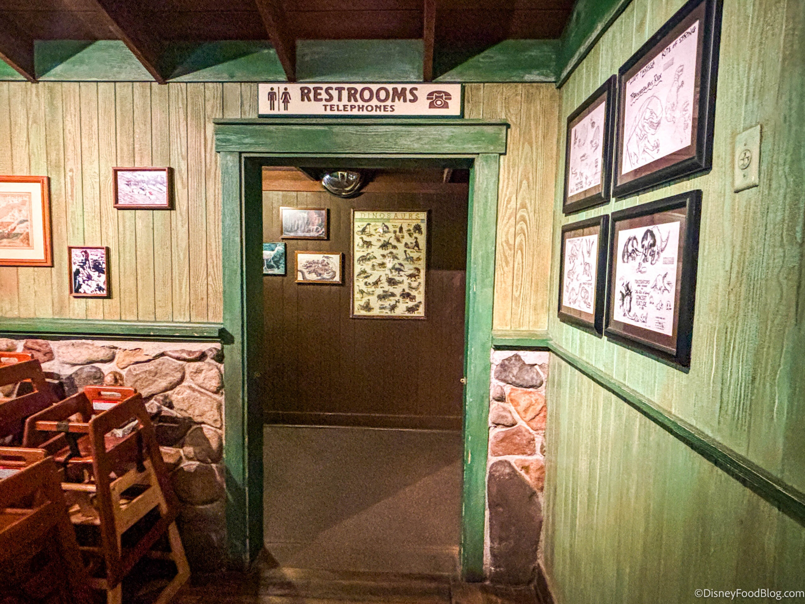 We’re getting ready to say goodbye to DinoLand, U.S.A., for good in Animal Kingdom, and while I am mourning the loss of my beloved DINOSAUR (and my even more beloved Dr. Grant Seeker), I will not be sad to see the Restaurantosaurus restrooms go after my recent visit there. These bathrooms are located inside Restaurantosaurus, but they have an exterior door that provides easy access for those looking for a restroom in the DINOSAUR area.