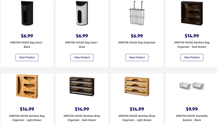 Alright, let’s talk about some of our favorite home items that ALDI will have — and there’s LOTS! Take a look at the bag saver, helping keep your kitchen a little more organized. As a matter of fact, everything here is to help make sure your space is clean and organized — make your pick!