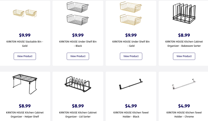 There are tons of shelf bins and more organizers at ALDI. There’s also a towel holder available in two different colors.