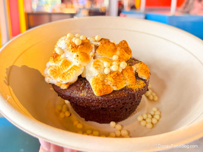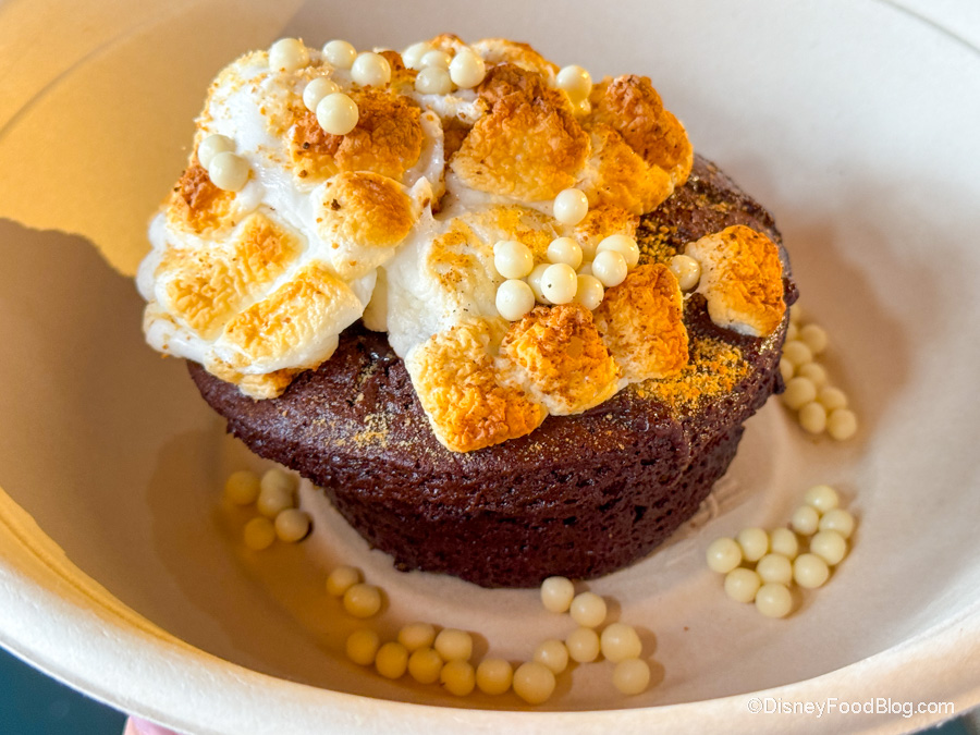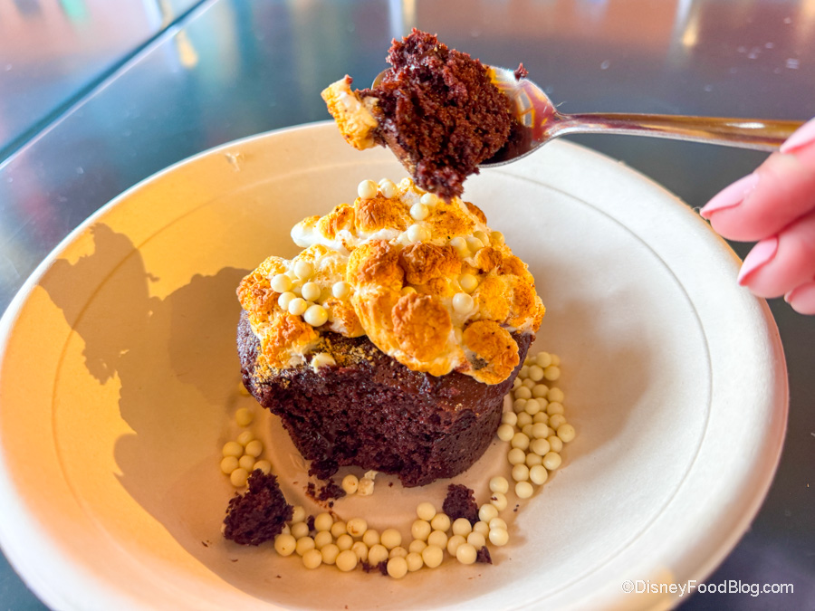 However, with that being said, the cake is moist, and it even has a little bit of lava cake thing happening with melty chocolate throughout. The crispy pearls add a nice crunch. The overall flavor, though, is toasted marshmallow, and it even SMELLS like toasted marshmallow. We were most surprised that there weren’t any spices or anything added to it. But these are just standard flavors.