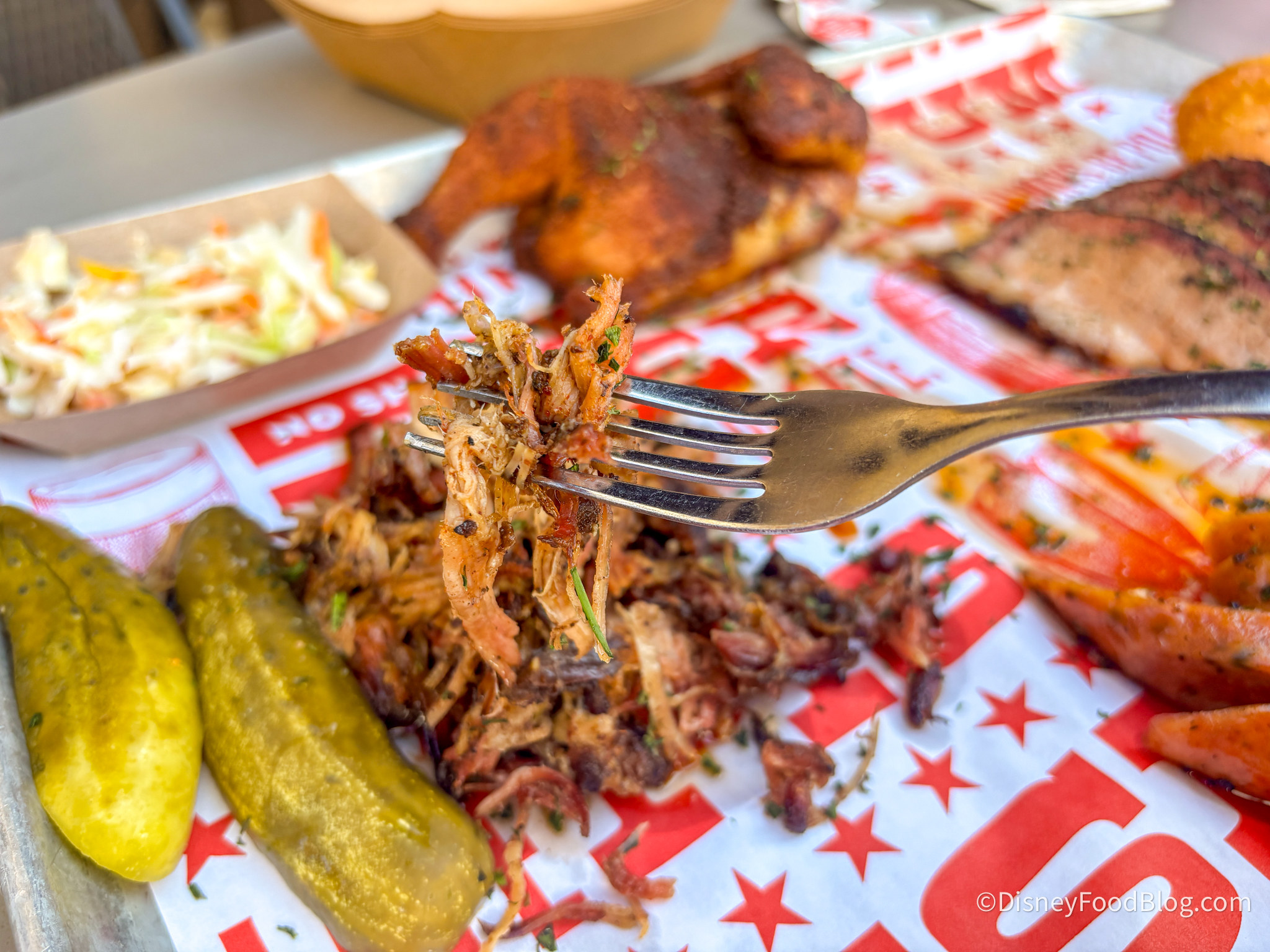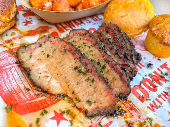 Before we even dive in, we have to tell you that you’ll 100% want to grab sauces to eat with the meat, as lots of it was on the drier side. Starting out with the Pork, we have to say that this was fairly moist (although definitely recommend some sauce!), and it had a great smoky flavor to it. We enjoyed the varying textures, as it was soft in some parts and then crispy portions from the outside.