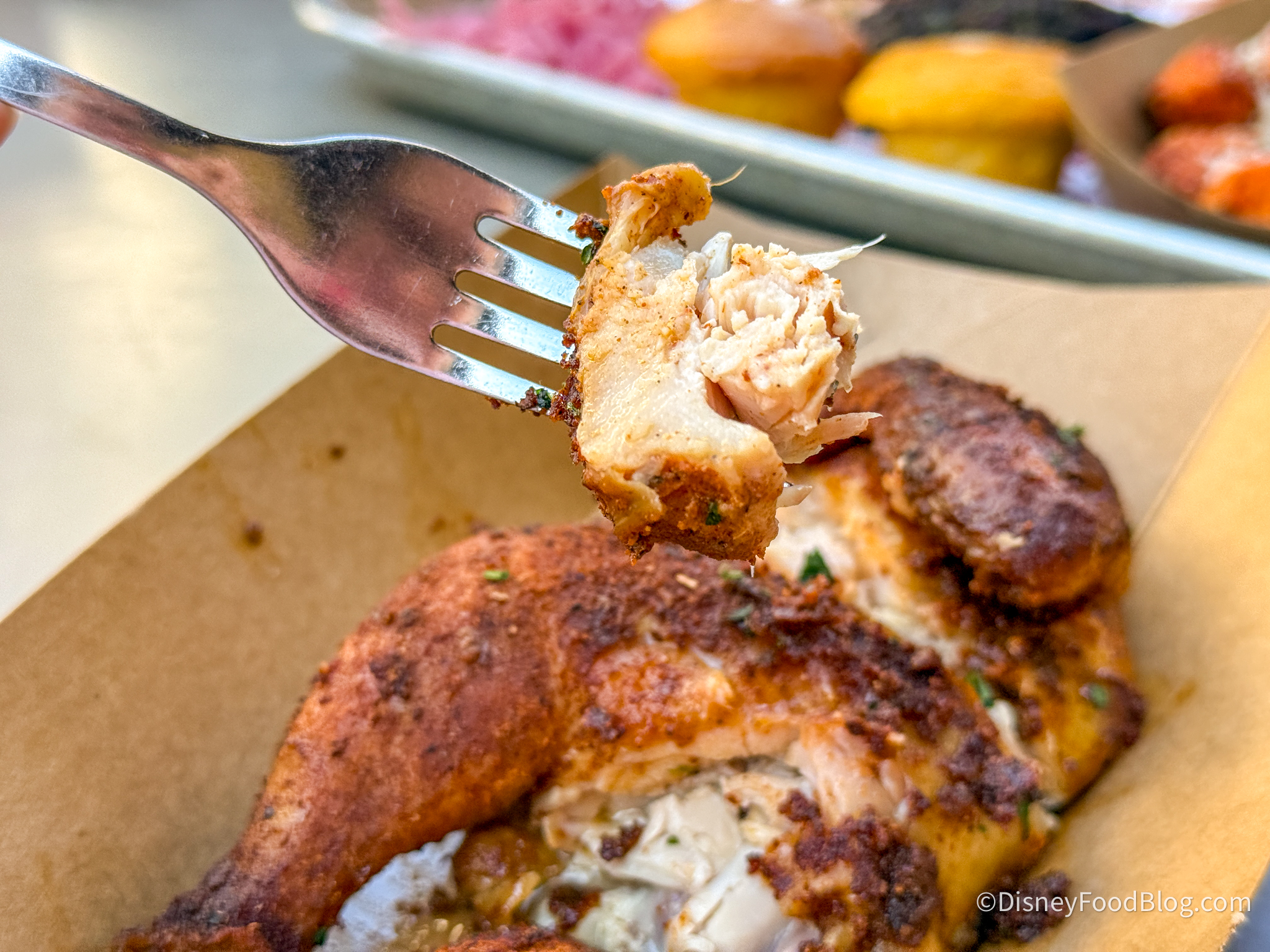 The final meat on the platter for us was the Smoked Chicken, which was extra juicy and had a bit of a kick to it (but not over the top) due to being well seasoned. It was a bit difficult to cut since it’s bone-in, but worth the work.
