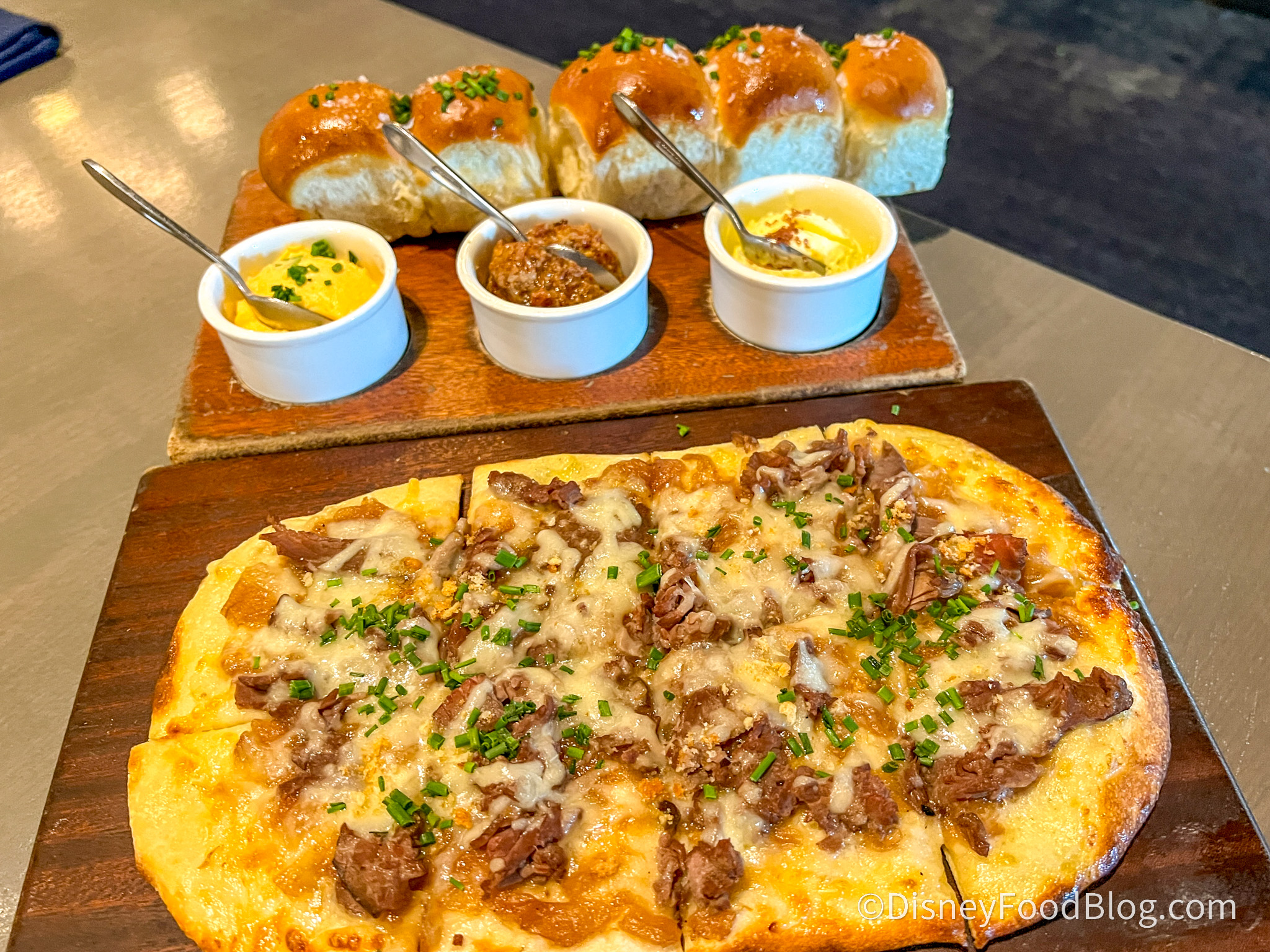 Lunch and dinner may not offer up a continental enhancement option like breakfast does, but you can still get salads, flatbreads, and main plates for $13-$25 during lunch, while plates during dinner get a little more pricey, but still don’t tend to break the $40 threshold. (Just to give you a point of reference, if you walk inside EPCOT and order an entree from the Regal Eagle Smokehouse QUICK SERVICE, prices are gonna be almost the SAME as Ale and Compass’ lunch options, ranging between $13-$19.)
