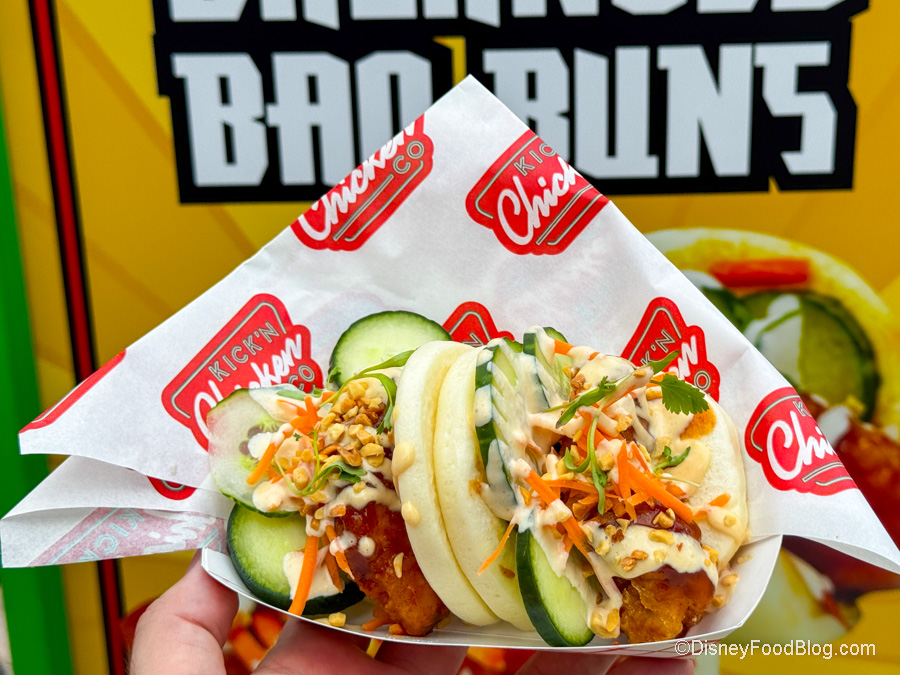 You can also pick up the Balanced Bao Bun at Kickin’ Chicken Co., which is two steamed bao buns filled with crispy tempura chicken coated in Japanese BBQ sauce and topped with fresh cucumbers, carrots, cilantro, chopped peanuts, and spicy mayo for $10.29. We’re sad to report that the tempura chicken tasted like it was made from frozen. The Japanese BBQ sauce is strong and offers a sweet and salty touch. The spicy mayo was cool, but also spicy, and balanced well with the other ingredients. It’s kind of small, but it’s one of the more elevated things you can get in LEGOLAND Florida.