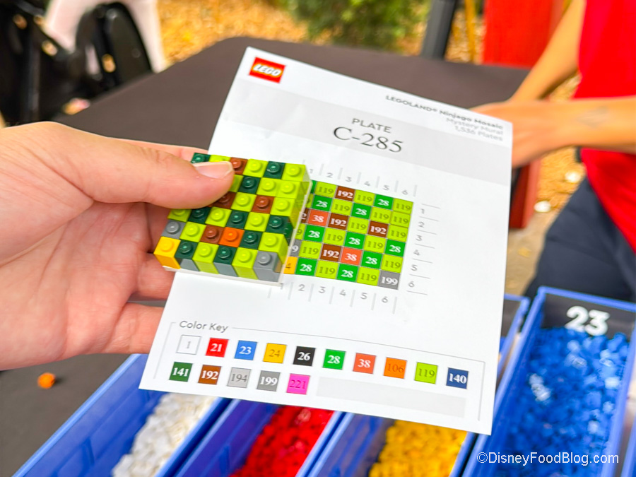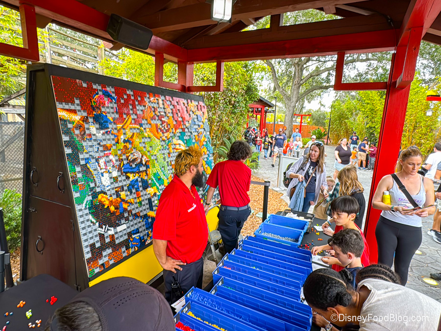 You can pick up a card and some bricks, which will tell you what colors you need for the little block you’ll make. That block gets added to the overall build. It’s sort of like the EPCOT Festival of the Arts Expression Section…but with LEGOS.
