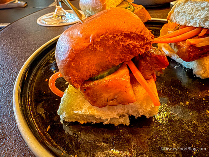 First up, we grabbed the Báhn Mì Sliders for $14. This is made with Pork Belly, Marinated Cucumber, and Sriracha Aïoli. These are rich, with delicious, perfectly cooked pork belly mixed with lightly pickled cucumbers and fresh carrot shreds. The buns are toasted, which adds a crunchy texture we adored. The aioli is lightly spiced, which rounds out the dish. While we do feel they’re beyond delicious and packed with flavor, they are a bit on the small side, so we can understand if some people feel they’re a little too expensive. We think they’re worth it, but we can understand not everyone feeling the same way!