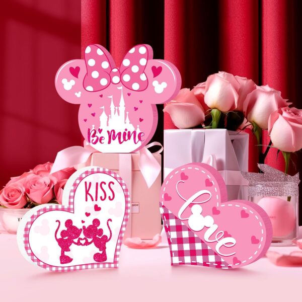 We love a deal just as much as anyone else, and the Valentine’s Day Mouse Table Signs are a steal! The pack comes with three different, smaller signs, all themed to the holiday in a Disney way. One is the same Minnie castle silhouette as seen in the “O” of “Love” in the previous sign, the second is a white heart with Mickey and Minnie in pink sharing a kiss, and the third is pink checkered with hearts and says “Love” (again, the “O” is a Mickey silhouette).